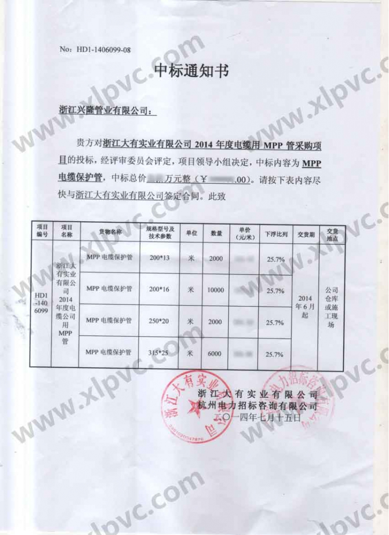 中標(biāo)通知書